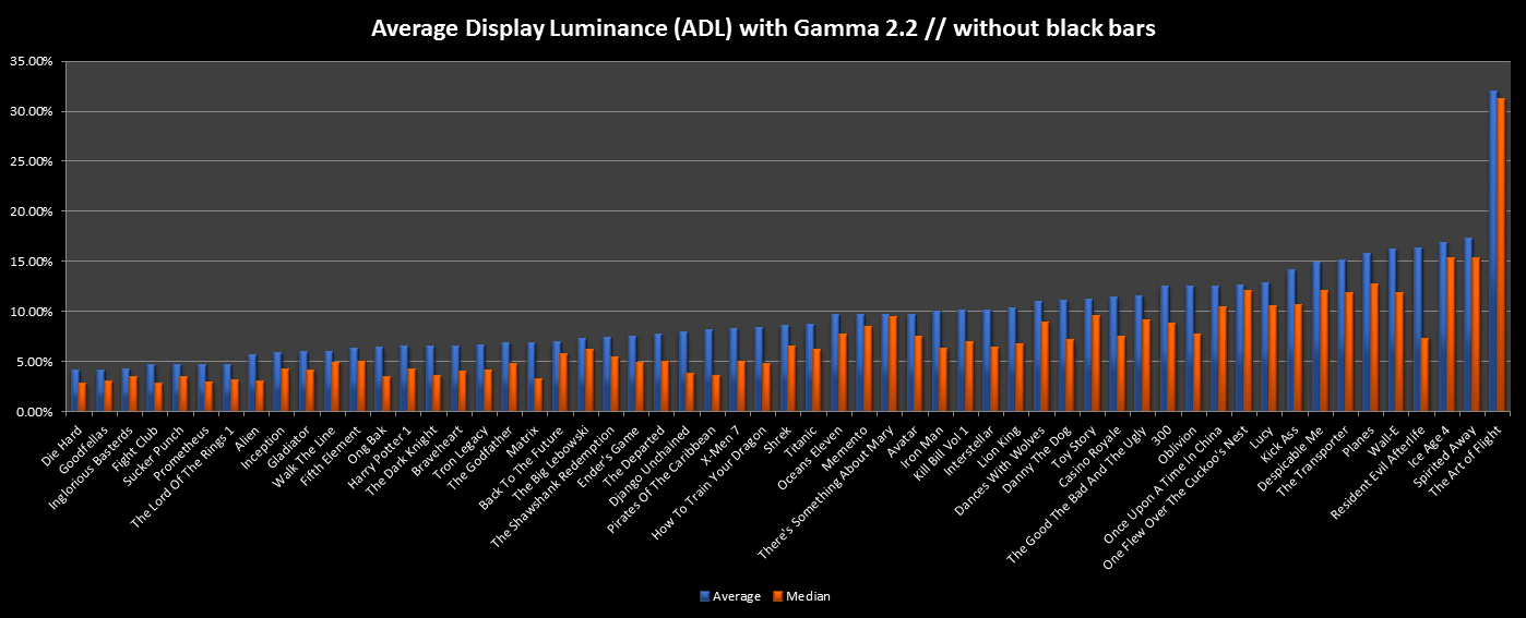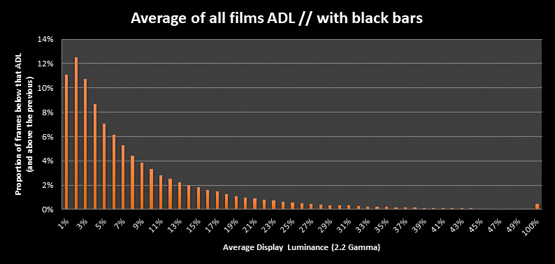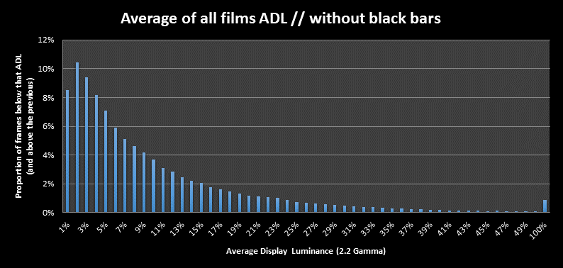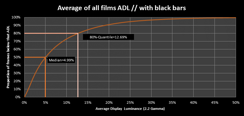 We have 80% of all movie pictures below 13% ADL luminance and 50% of all pictures below EVEN 5% ADL luminance.